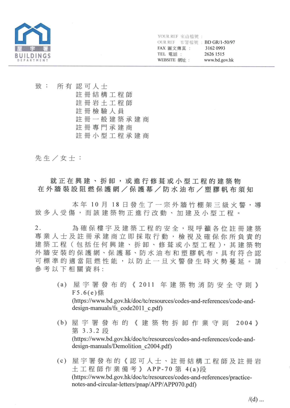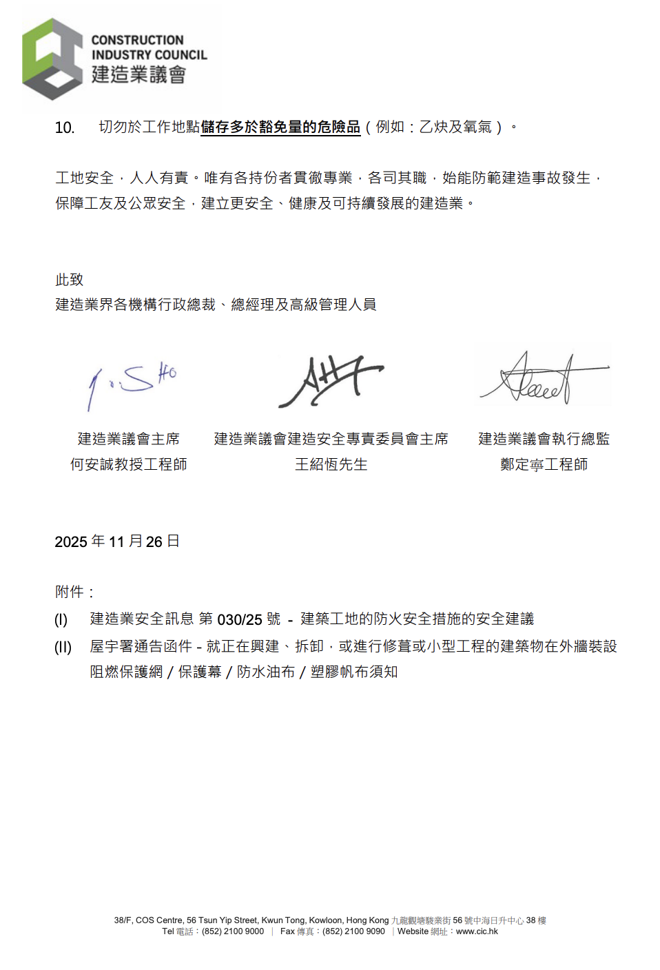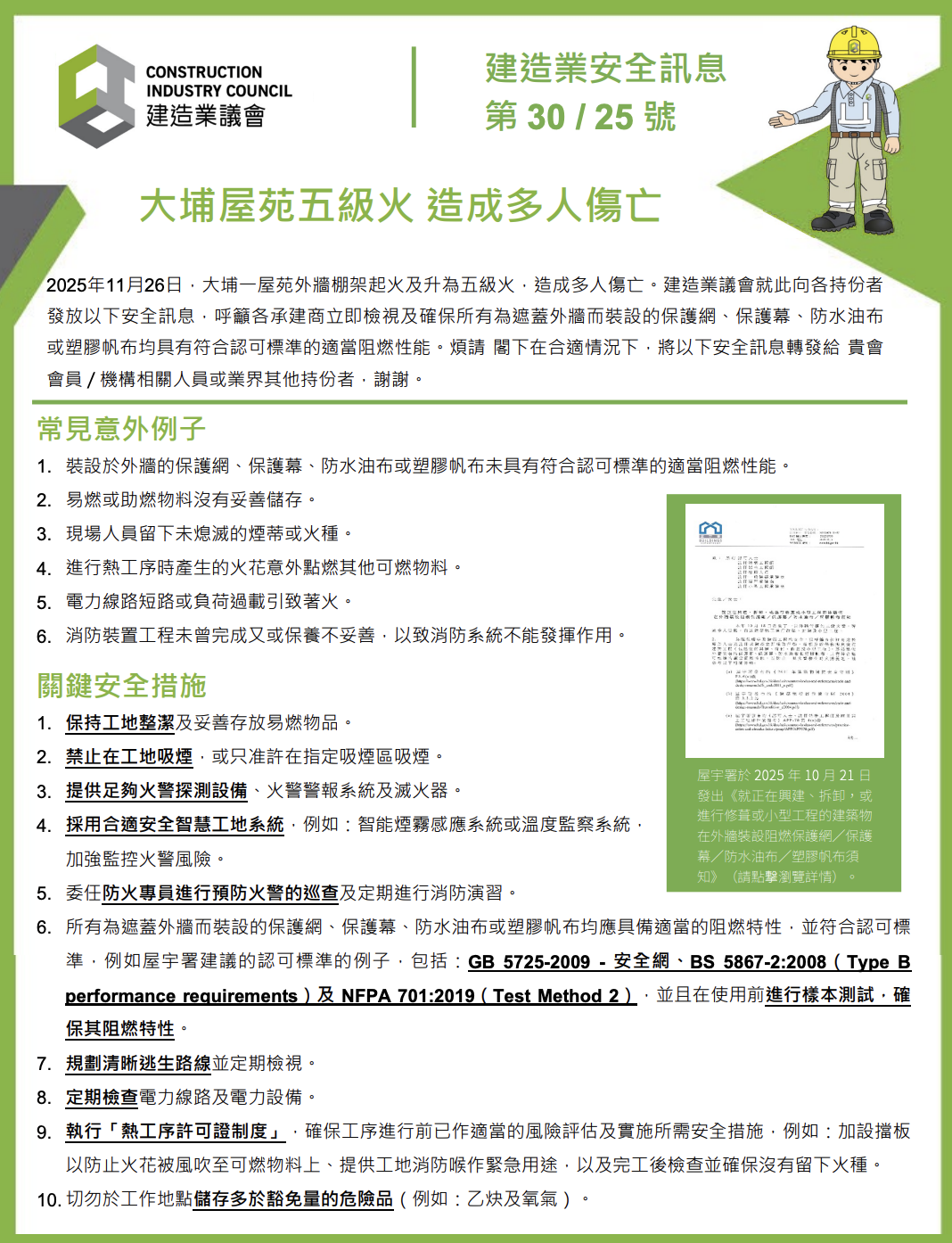 Urgent Appeal to Contractors to Review and Ensure Proper Fire Safety Measures on Construction Sites